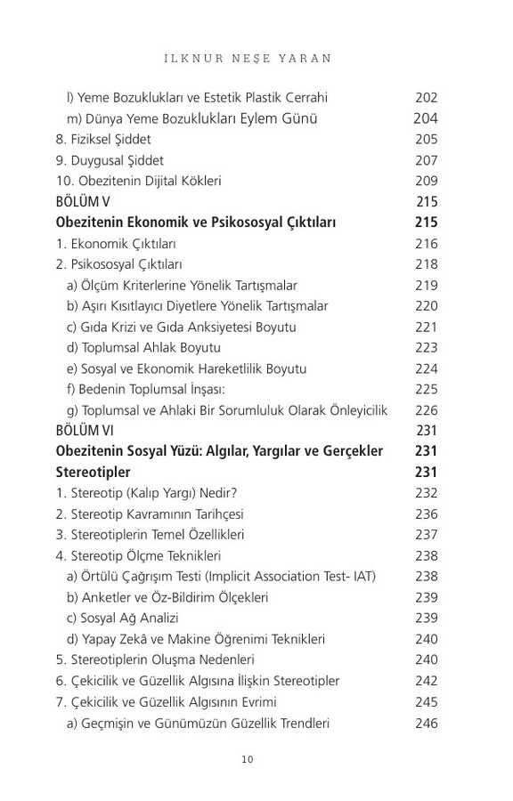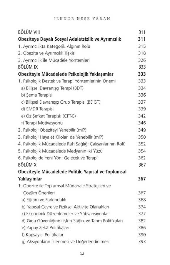 Yazar, sorunu anlamak ve çözümler üretmekten öteye geçerek toplumsal bir sorunun çözümünde farkındalık–sorumluluk alma gibi insani duyarlılıklara vurgularken; kişileri etiketlemeden, ayrıştırmadan, yargılamadan obezite sorunu olan kişilere daha adaletli ve eşitlikçi bir yaklaşımın hepimizin sorumluluk alanında olduğunun altını çizmektedir. Bu yanıyla okuyucuyu da çözümün bir parçası olmaya davet etmektedir.