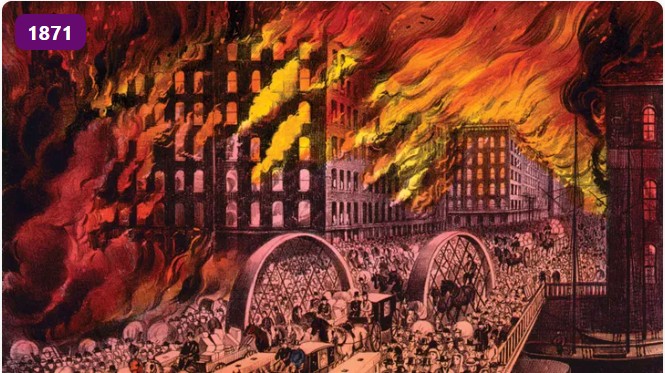 Patrick ve Catherine O'Leary'nin ahırında, 1871 yılının bu gününde, Büyük Chicago Yangını başladı ve iki gün sonra yangın söndüğünde, şehrin büyük bir kısmı tahrip olmuş ve yaklaşık 300 kişi hayatını kaybetmişti.