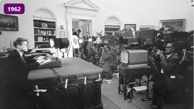ABD Başkanı John F. Kennedy, 1962 yılının bu gününde, Küba füze krizi konusunda Amerikalıları uyardı ve ABD kıyılarının 90 mil (145 km) açığındaki ada ülkesine daha fazla füze sevkiyatını önlemek için deniz ablukası ilan etti.