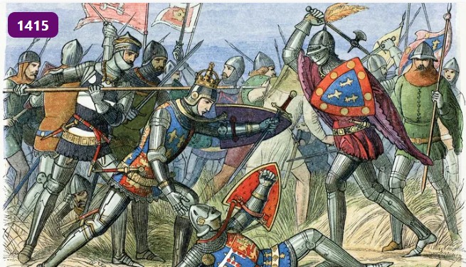 Henry V komutasındaki İngiliz ordusu, 1415 yılının bu gününde, Yüz Yıl Savaşları sırasında Agincourt Savaşı'nda Fransızlara karşı kesin bir zafer kazandı ve İngilizlerin daha sonraki fetihlerine ve başarılarına zemin hazırladı.